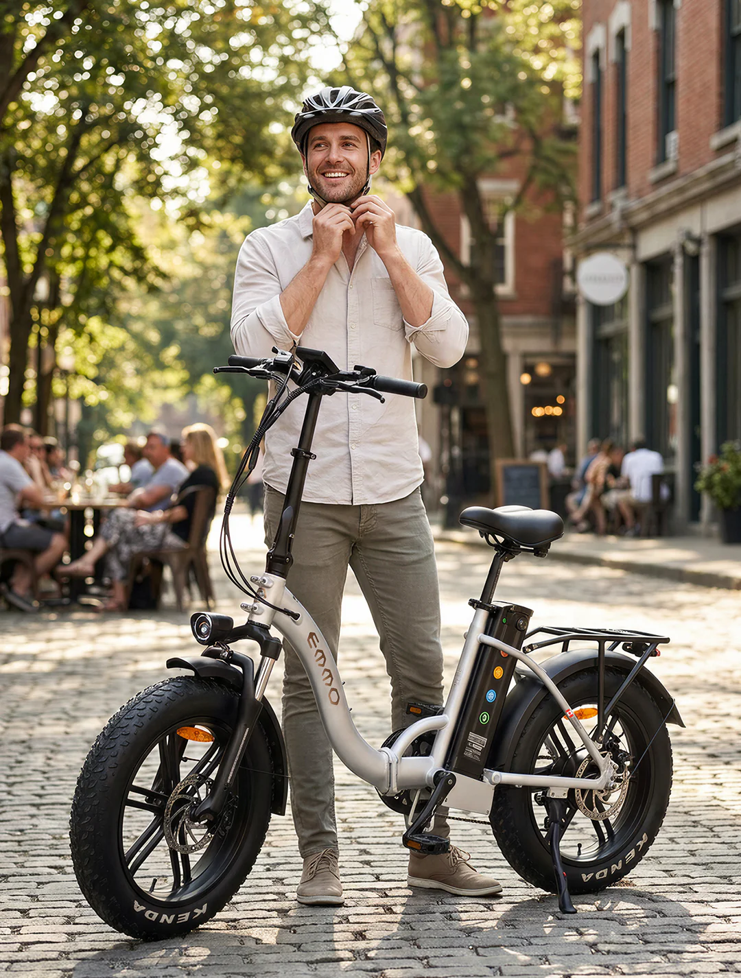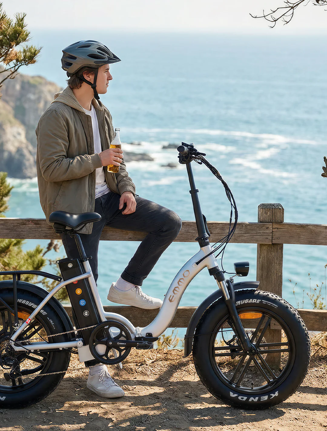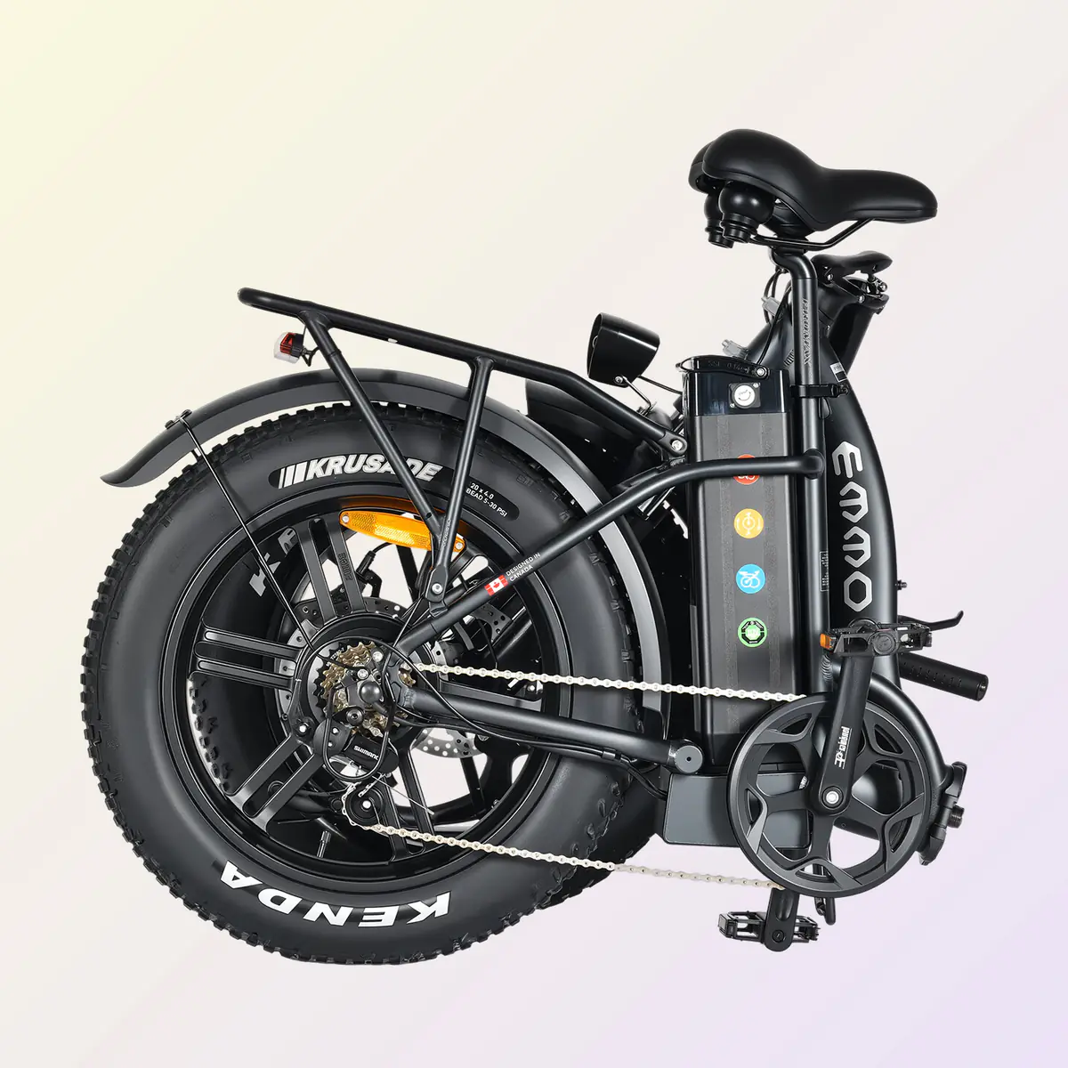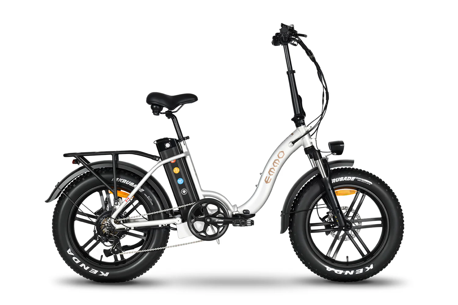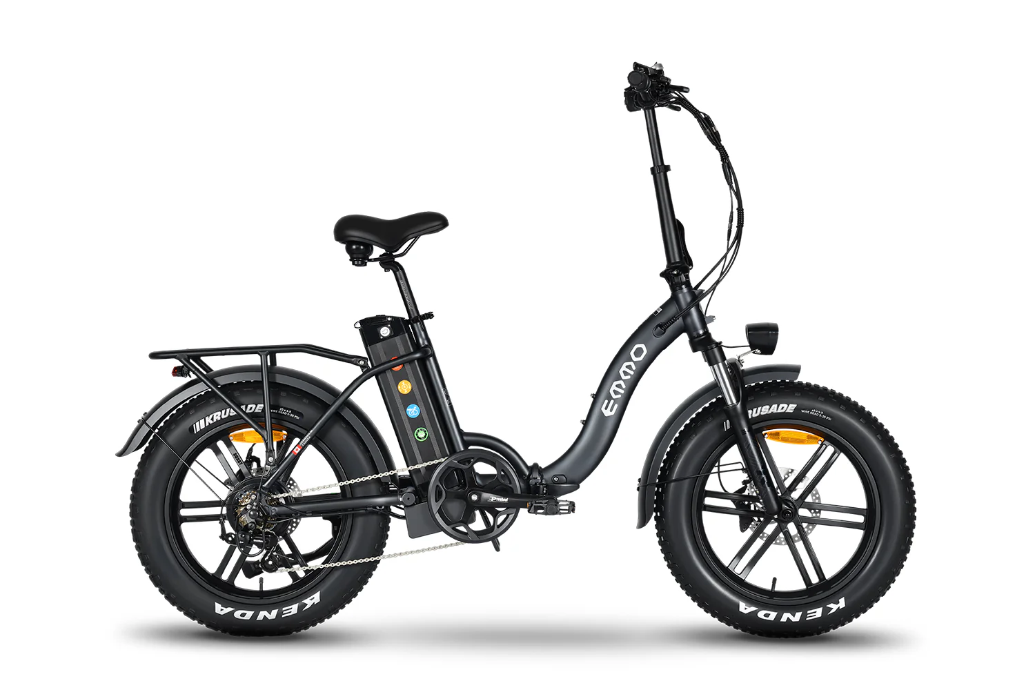 EMMO E-Mini Pro is a UL 2849 certified foldable fat-tire electric bike designed for portability and everyday use. It features a 48 V removable SafeSeal™ lithium battery with up to 125 km range, using gel protection for improved safety and lifespan. The step-thru foldable frame allows quick folding and unfolding within seconds, making it easier to store in a car trunk or small space. Its compact design supports riders who need a convenient e-bike for city commuting, short trips, or all terrain rides.